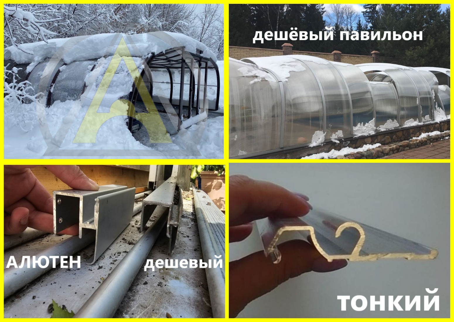 Обратите внимание на фото - насколько похожи качественный и дешёвый павильон для бассейна, если нет возможности заглянуть внутрь и сравнить сечение!